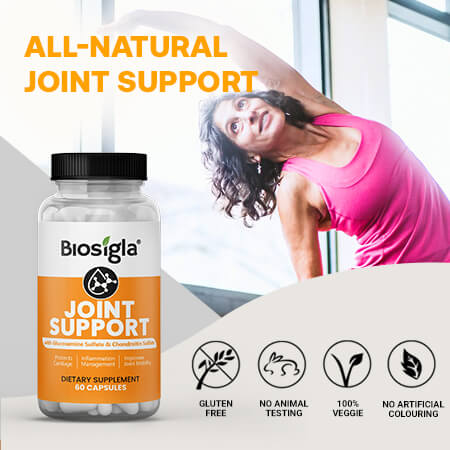 Joint Support is a powerful natural blend aiming to support your joints, mobility and flexibility. It will help you rebuild your cartilages and joint structures. The reduced inflammation in your body will protect the joint tissues. Say goodbye to the pain and discomforts that come with age, weight or athletic deterioration of the joints in the body. Improved mobility will make your life easier and happier. Feel more comfortable in your own skin every day!